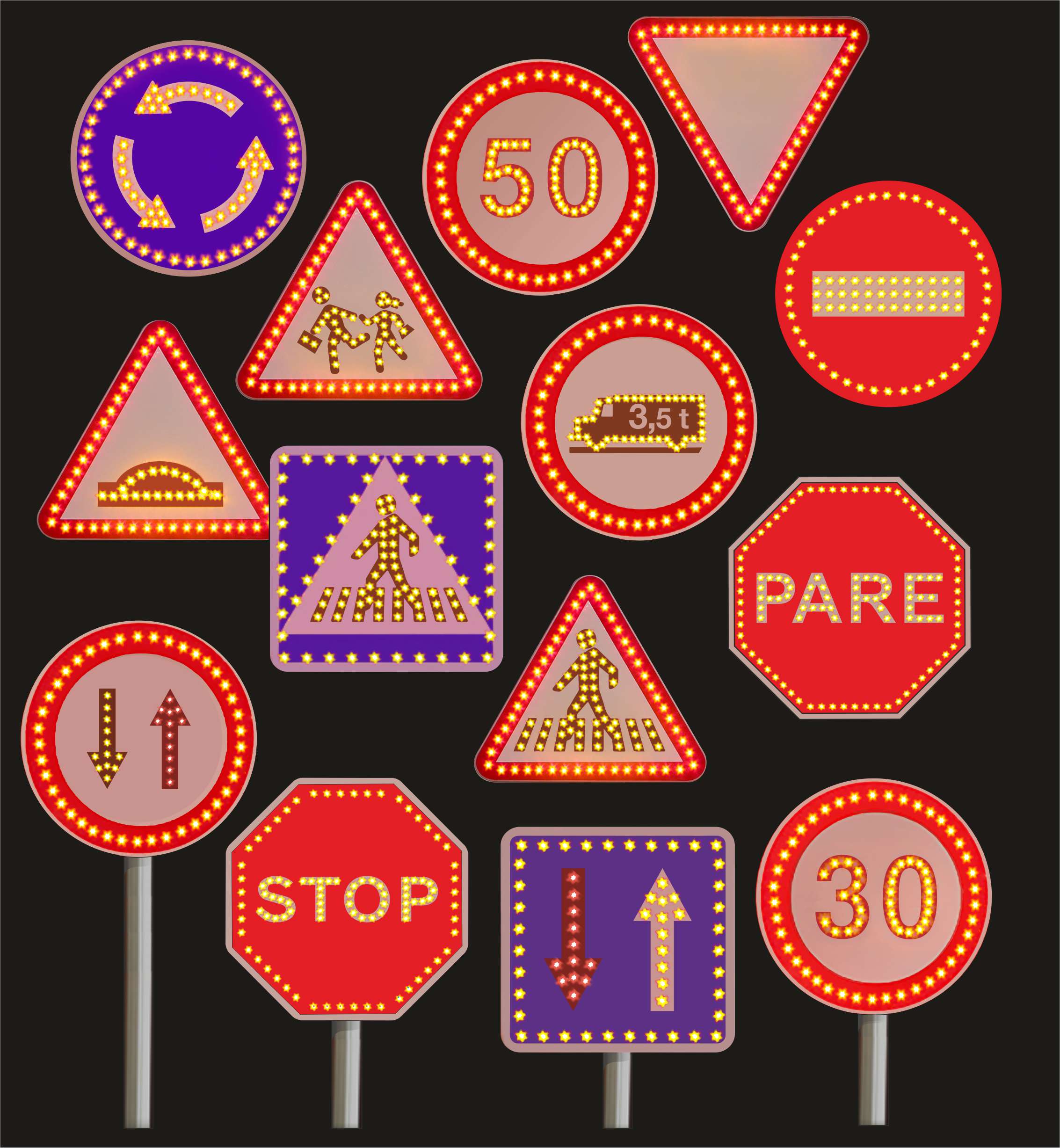 - Leds grocs i vermells amb ampli angle de visió, alta lluentor i llarga vida.